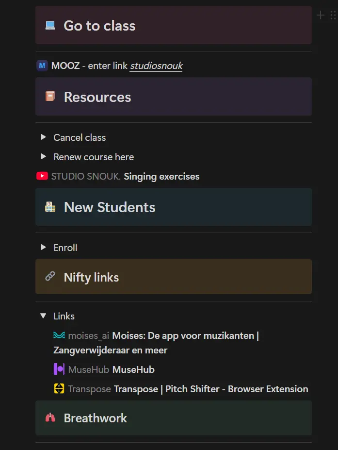 The Notion learning environment is more than just your page! Find sung exercises, videos with explanations and more information about singing and technique here.
